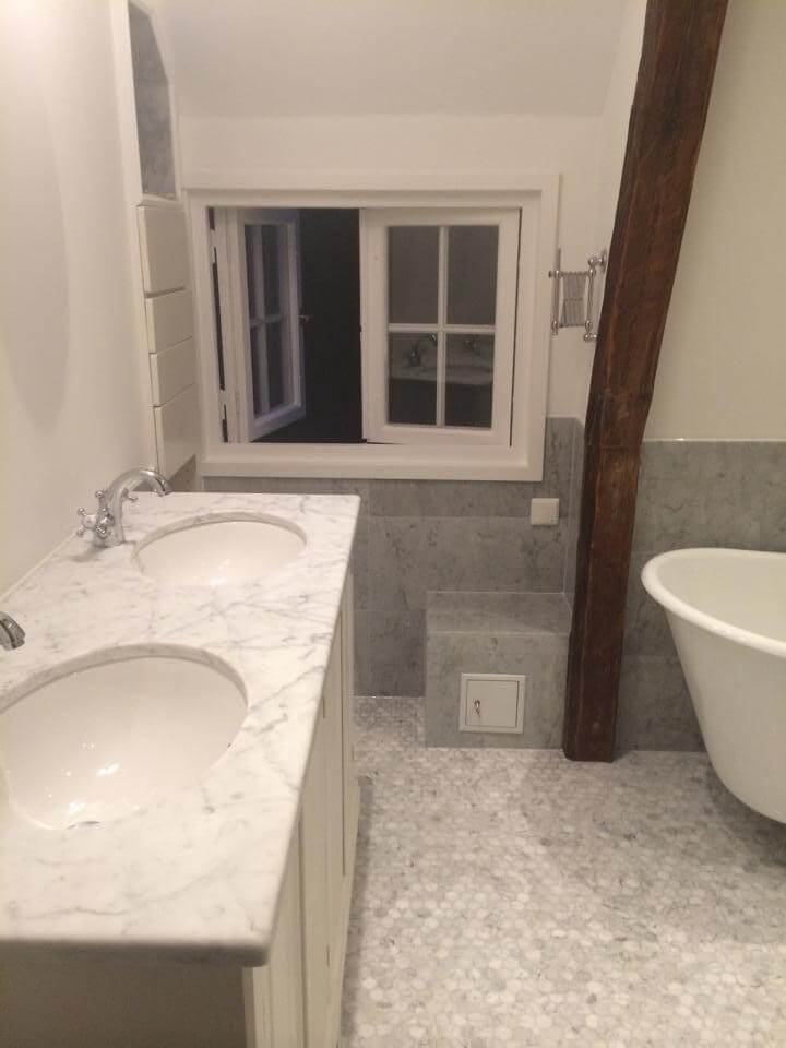 Våra plattsättare ser bara möjligheter med varje kakelentreprenad. Ett nyrenoverat badrum vill man gärna ha lättstädat och praktiskt. Som till exempel genom vägghängda wc-stolar och inbyggda rör.